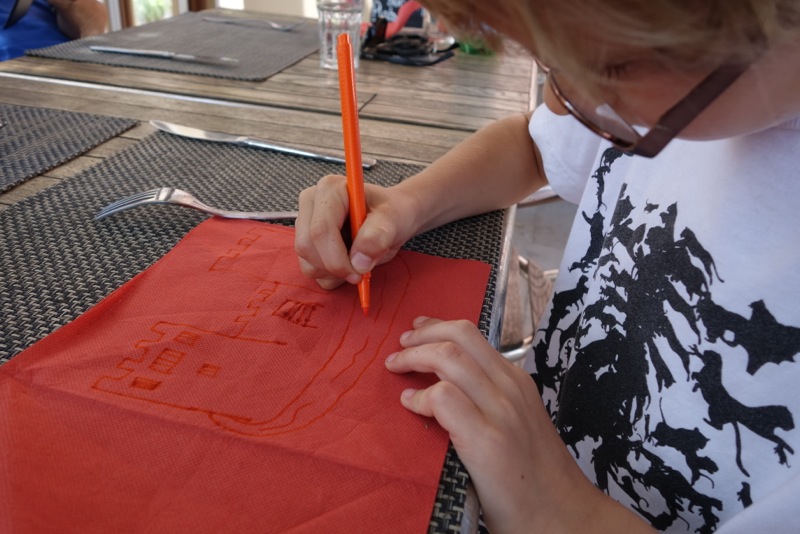 If you are smart, you will always lug around pencils and paper, a pack of cards and something to read so that if you get held up, the ferry ride takes longer than expected or you end up in a café, the kids don’t start tearing each other’s throats out or sucking sugar sachets and throwing the pepper around.