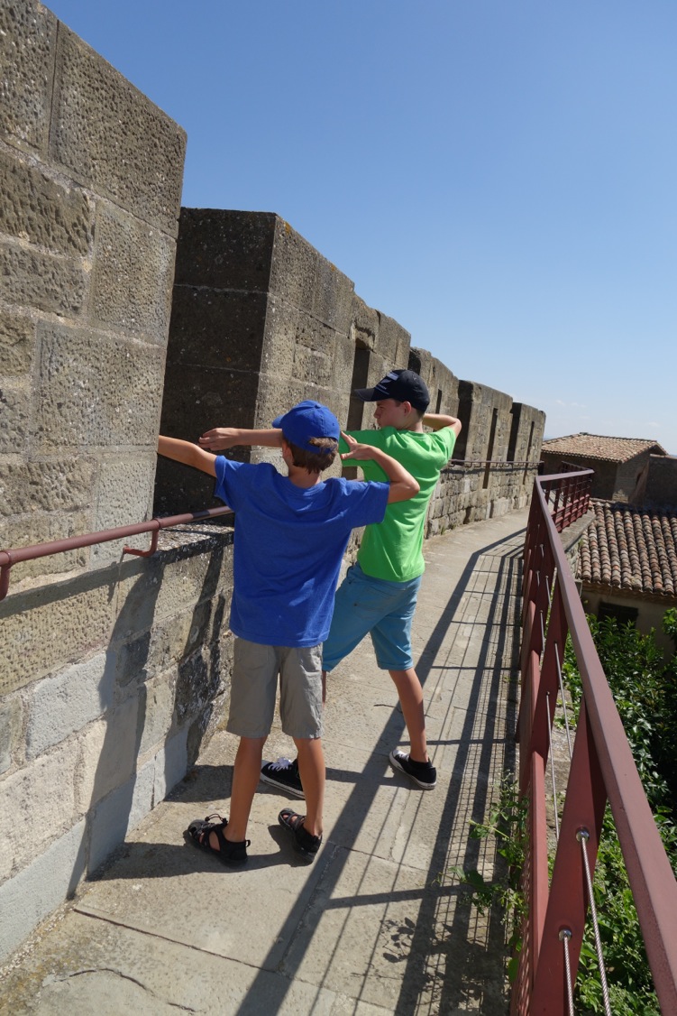In Carcassonne we unwisely said “yes” to the boys’ request to explore the walls of the medieval city long, long after bedtime and spent the evening stumbling around perilous walkways, dark tunnels and mysterious corners, collapsing into bed close to midnight grubby, exhausted and elated.
