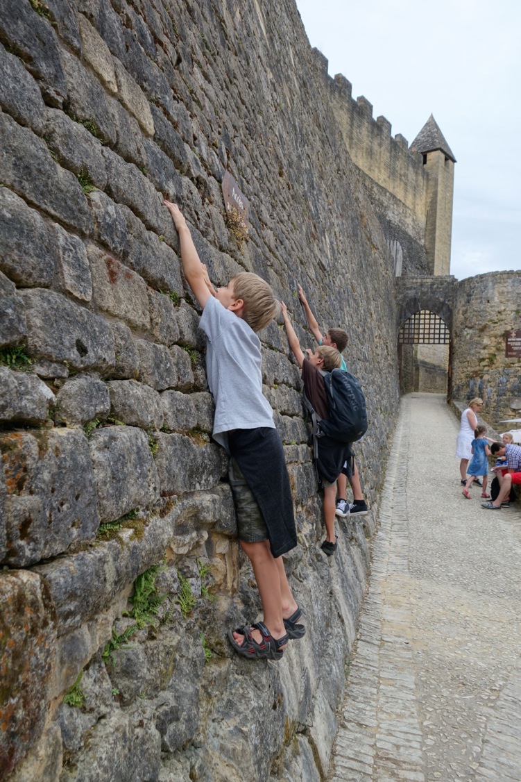 One stormy day in a castle fortress also in the Dordogne, I thought the two older boys had lost interest and headed for the exit, only to discover they had found their way back to the cliff-top barricades. They were running around shrieking with laughter at the thunder, spotting lightning bolts across the valley and getting soaked (Yes the perils of the situation did occur to me, which is why I watched from the safety of a doorway).